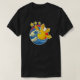 El color es muy bonito al natural, como la foto. El tejido es suave y de buena calidad. Sin defectos en el tintado, ni hilos sueltos o descosidos. Bien la impresión. Los bordes de las letras y el dibujo son nítidos, y el color contrasta muy bien con el de la camiseta.