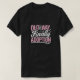 El color es muy bonito al natural, como la foto. El tejido es suave y de buena calidad. Sin defectos en el tintado, ni hilos sueltos o descosidos. Bien la impresión. Los bordes de las letras y el dibujo son nítidos, y el color contrasta muy bien con el de la camiseta.