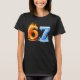 Cool 67 meme outfit with flaming 6 and icy 7! Not an age – just a bold fire and ice design for kids who love memes, fantasy powers, epic visuals and funny number jokes. Eye-catching and fun!