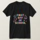 Celebrate the big milestone with this cute 'First Day of School' design. Featuring 3D bubble lettering in soft pastel colors, accented with stars and hearts, it's the perfect outfit for any young student.