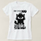 A funny, sarcastic black-and-white graphic design showcases a black cat with frazzled fur and a scowling expression. The black handwritten text says, "First of all, no. Second of all, still no!" Available on a wide variety of products, this design makes a perfect gift for cat lovers.
