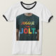 Claro, aquí hay algunas descripciones del diseño de la camiseta para la imagen de "Juggle the Jolt.": Simple y negrita: Un diseño de un solo color con el texto "Juggle the Jolt" en un tipo de letra negrita, sans-serif. El texto se centra en el pecho y se inclina ligeramente para crear un ambiente dinámico. El diseño es minimalista y versátil, adecuado para el desgaste informal y formal. Playful and Retro: Un diseño multicolor con el texto "Juggle the Jolt" en una letra divertida y redondeada. Cada letra es de un color diferente, creando un efecto divertido y llamativo. El fondo es un color sólido que complementa los colores del texto. El diseño recuerda a las camisetas de época y evoca un sentimiento de nostalgia. Energético y moderno: