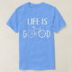 El color es muy bonito al natural, como la foto. El tejido es suave y de buena calidad. Sin defectos en el tintado, ni hilos sueltos o descosidos. Bien la impresión. Los bordes de las letras y el dibujo son nítidos, y el color contrasta muy bien con el de la camiseta.
