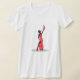Flamenco Dancer disgustado diseño en rojo y negro. Está sosteniendo un ventilador y parado en una plataforma.