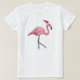 Un flamenco rosa con un sombrero de Santa lava en el agua.