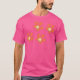 El color es muy bonito al natural, como la foto. El tejido es suave y de buena calidad. Sin defectos en el tintado, ni hilos sueltos o descosidos. Bien la impresión. Los bordes de las letras y el dibujo son nítidos, y el color contrasta muy bien con el de la camiseta.