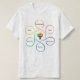 de la Unitarian Universalist Association ,, A cáliz con la palabra AMOR sobre la flameza y seis brazos estirados que crean un círculo alrededor de cada uno de los valores centrales y forman una forma de flor de seis pétalos. Cada brazo es un color diferente - en el sentido de las agujas del reloj son: Interdependencia (Naranja), Equidad (Rojo), Transformación (Púrpura), Pluralismo (Azul), Generosidad (Verde) y Justicia (Amarillo).