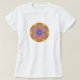 Una flor estrella rosa con un contorno verde y un centro azul, sobre un naranja vibrante y un fondo amarillo.