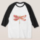Dibujado artísticamente, dorado, libélula con joyas de color rojo y alas decoradas con rojo, floreciente, cerezo japonés con joyas sobre fondo blanco. Dragonfly de oro.