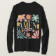 Descripción: Un diseño colorido y edificante que presenta la palabra "AMEN" en una fuente purpurinoso y decorativa rodeada de flores vibrantes, hojas y un lindo arco rosado. La combinación de elementos florales y colores pastel le confiere una estética alegre e inspirada en la fe.