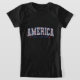 A bold and vibrant design spelling out "AMERICA" in large, stitched block letters filled with red, white, and blue floral patterns. Below the word, the phrase “LAND OF THE FREE” is displayed in strong navy blue letters, flanked by red stars. The overall aesthetic blends patriotism with a soft, decorative touch, celebrating American pride in a unique and stylish way.
