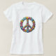 Celebrate peace and beauty with this vibrant floral peace symbol tee. The digital illustration features a detailed circular arrangement of colorful flowers—daisies, carnations, and chrysanthemums—in pink, yellow, blue, and purple tones. Each flower is intricately designed with textured petals and leaves, forming a harmonious and symmetrical peace sign. Set against a plain white background, the vibrant colors pop, creating a joyful and eye-catching look. Perfect for those who love nature, positivity, and expressive, boho-inspired fashion.
