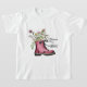 Una bota rosa vibrante desbordada de flores y vegetación floreciente, acompañada de la frase "Florecer y crecer", que simboliza la resiliencia, el crecimiento y la belleza en lugares inesperados.