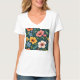 Camiseta con cuello en V de mujer, Negro, XL de adulto