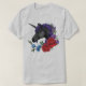 Perfil negro de unicornio con flores de color rojo, púrpura y azul en un fondo violeta claro