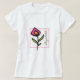 Camiseta con tu nombre personalizado u otro texto dentro de un marco de color negro con un borde rosa. Su nombre está escrito en un tipo de letra de guión sofisticado. Con un ilustracion de una flor silvestre rosa bonito con tallos verdes y hojas largas.