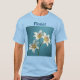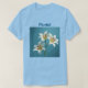 Camiseta florista White Lilies Esta es una camiseta florida de los Lilies blancos. El arte cuenta con tres lirios blancos de fondo azul. El color de la camiseta que se muestra es azul claro. La imagen de los lirios y la palabra florista están en la parte delantera y trasera de la camiseta. Florist está en texto azul. Puede cambiar el texto haciendo clic en el botón Personalizar.