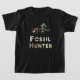 El gráfico Fossil Hunter muestra a un entusiasta coleccionista examinando parte de un fósil con los restos aún enterrados debajo del suelo. Debajo están las palabras "Cazador fósil" con las letras ocasionalmente rotas como un fósil. Un diseño divertido para los aficionados a la caza de fósiles.