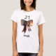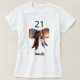 Camiseta blanca de color claro Decorada con un marco fotográfico en forma de arco. Personalice y agregue un nombre y una edad. Guión de estilo manuscrito negro.