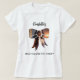 Una camiseta blanca de color claro decorada con un marco de foto con forma de lazo. Personaliza y añade un nombre. Letra manuscrita negra.