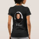 Esta camiseta negra presenta la foto de la futura novia en la parte posterior con elegante escritura blanca en ambos lados. Para cambiar el nombre y la foto, haga clic en el botón de personalizar.