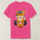 El color es muy bonito al natural, como la foto. El tejido es suave y de buena calidad. Sin defectos en el tintado, ni hilos sueltos o descosidos. Bien la impresión. Los bordes de las letras y el dibujo son nítidos, y el color contrasta muy bien con el de la camiseta.