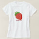 Une illustration de fraise audacieuse et éclatante, dans un style plat et moderne, encadrée dans une forme décorative de badge. Des tons rouge vif rehaussés de pépins jaunes et de feuilles d'un vert frais, accompagnés de la légende en français « Fraîcheur d'été ». Fraîche, ludique et parfaite pour l'été !
