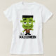 Son camisetas Frankenstein de Halloween, trajes, almohadas y más con un Frankenstein verde con texto que dice ¡Es Halloween!