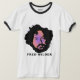El color es muy bonito al natural, como la foto. El tejido es suave y de buena calidad. Sin defectos en el tintado, ni hilos sueltos o descosidos. Bien la impresión. Los bordes de las letras y el dibujo son nítidos, y el color contrasta muy bien con el de la camiseta.