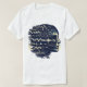 A striking side-profile human silhouette filled with layered waveforms, neural network nodes, heartbeat lines, and data grids rendered in deep navy and electric cream. The graphic merges science, consciousness, and technology into one powerful visual — perfect for thinkers, creators, and tech-forward wearers.