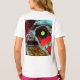 Wear bold creativity with this T-Shirt featuring Frequency Serpent. A serpentine red structure curves vertically across the fabric, marked by circular elements resembling vibrational cores, while horizontal bands of blue, green, and white flow in the background like waves of data. The interplay of intense colors and curved forms creates dynamic tension, transforming this everyday garment into a wearable canvas of digital abstract art. Perfect for casual wear, artistic expression, or gifting to those who love fashion with energy.