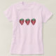 La camiseta tiene una hilera de fresas rojas brillantes, impresas sobre un fondo rosado. Creado a partir de un ilustracion acuarela original.