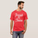 El color es muy bonito al natural, como la foto. El tejido es suave y de buena calidad. Sin defectos en el tintado, ni hilos sueltos o descosidos. Bien la impresión. Los bordes de las letras y el dibujo son nítidos, y el color contrasta muy bien con el de la camiseta.