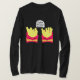 Dos contenedores de patatas fritas personalizados sonríen, y uno de ellos dice, "¡¡Fries antes que chicos!!". El diseño colorido y lúdico añade un mensaje humorístico y luminoso.