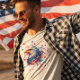 Con la llegada del 4 de julio, entérate en tu espíritu patriótico con este diseño patriótico de taza de papel con un águila audaz con los colores de la bandera estadounidense sobre un fondo blanco y texto personalizado en rojo y azul.