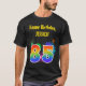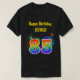 Este divertido y vibrante diseño de camisa presenta un colorido estallido de fuegos artificiales de celebración inspirado, junto con el número "85" que presenta un multicolor arcoiris como el espectro o el patrón gradiente. También incluye un nombre de personalizable y un mensaje de evento, como un saludo de cumpleaños "Feliz". Una camisa como esta puede ser usada por los invitados en una fiesta de cumpleaños que se lleva a cabo en celebración de los ochenta y cinco años de alguien. [~Z0000332]