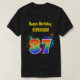 Este divertido y vibrante diseño de camisas presenta un patrón colorido inspirado en fuegos artificiales de celebración reventados, junto con el número "37" que presenta un multicolor como el espectro o el gradiente. También incluye un nombre de personalizable y un mensaje de evento, como un saludo de cumpleaños "Feliz". Una camisa como esta puede ser usada por los invitados en una fiesta de cumpleaños que se lleva a cabo en celebración de los 37 años de alguien. [~Z0000332]