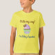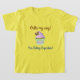Camiseta divertida y colorida. "¡Fuera de mi camino!" en chocolate a juego con la decoración de la quequitos. Luego el ilustracion de quequitos de colores vivos. Y finalmente "Estoy comiendo pasteles" en el mismo tipo de letra divertido, pero coincidiendo con los detalles del armario.