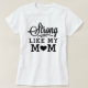 Elegante diseño de tipografía negra "Fuerte como mi mamá" con acento cardíaco.