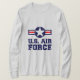 Esta camiseta de los hombres se muestra con una huella de la Fuerza Aérea de los Estados Unidos y se muestra en el cuello de la tripulación, mangas largas y un suave favorito de los clientes de Zazzle. Disponible en más colores. Color Ash Gray Personalizar o compra tal como está.