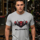 "Este diseño potente y dinámico presenta un toro rojo muscular con una expresión intensa, levantando una pesada barbera. Los cuernos fuertes del toro y su poderosa construcción enfatizan la fuerza y determinación crudas. Este diseño es versátil para una gama de productos relacionados con la aptitud, los deportes y las marcas de alta energía. Imagínenlo en ropa de gimnasio, accesorios de entrenamiento, mercadería de equipo deportivo, o marca de bebidas energéticas, que transmitan potencia e intensidad".