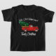 Camión rojo Oldtimer, árbol de navidad de familia de moda antigua divertida