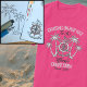 El color es muy bonito al natural, como la foto. El tejido es suave y de buena calidad. Sin defectos en el tintado, ni hilos sueltos o descosidos. Bien la impresión. Los bordes de las letras y el dibujo son nítidos, y el color contrasta muy bien con el de la camiseta.