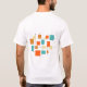 Añade un toque de color a tu armario con esta divertida camiseta de mediados de siglo. En él predominan los colores turquesa, crema y azul turquesa y los dos tonos naranjas.