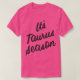 El color es muy bonito al natural, como la foto. El tejido es suave y de buena calidad. Sin defectos en el tintado, ni hilos sueltos o descosidos. Bien la impresión. Los bordes de las letras y el dibujo son nítidos, y el color contrasta muy bien con el de la camiseta.