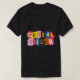 El color es muy bonito al natural, como la foto. El tejido es suave y de buena calidad. Sin defectos en el tintado, ni hilos sueltos o descosidos. Bien la impresión. Los bordes de las letras y el dibujo son nítidos, y el color contrasta muy bien con el de la camiseta.