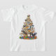 Adorable stack of dogs forming a Christmas tree, wrapped in lights and surrounded by presents. A cute and funny holiday design perfect for dog lovers and festive winter apparel.