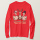 Get ready for some holiday honking with this hilarious long-sleeve t-shirt! Featuring three festive geese dressed up in their best Christmas costumes. One goose is sporting a Santa hat and cool sunglasses, the middle goose is a reindeer complete with antlers and string lights, and the third is a dapper snowman with a top hat and coal buttons. This unique, custom text t-shirt is perfect for family gatherings, office holiday parties, or as a fun, silly gift for the animal lover in your life. A fantastic alternative to the traditional ugly Christmas sweater! Customize the text below the geese to make it truly yours.