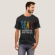El color es muy bonito al natural, como la foto. El tejido es suave y de buena calidad. Sin defectos en el tintado, ni hilos sueltos o descosidos. Bien la impresión. Los bordes de las letras y el dibujo son nítidos, y el color contrasta muy bien con el de la camiseta.