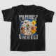 La camiseta en sí, bastante bien. Un poco grande, pero supongo que en dos lavados entallará mejor. Aquí tengo el mismo problema que antes, que el dibujo ocupa toda la camiseta, y por internet me había imaginado que era más pequeño.